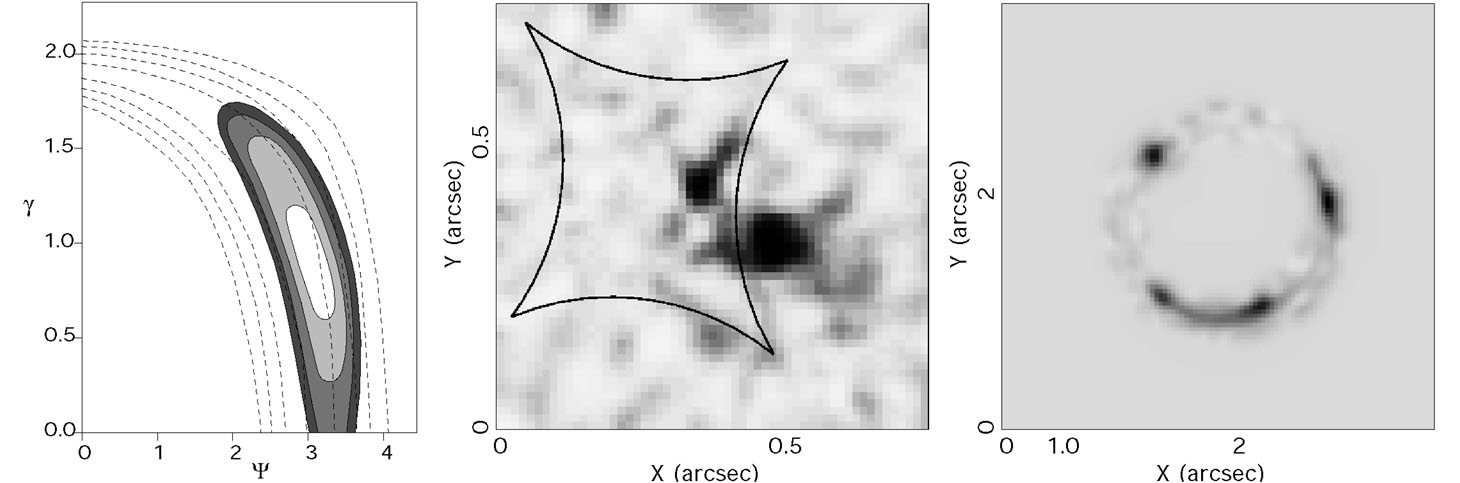 to the tangential (astroid) caustic. The left panel shows the resulting