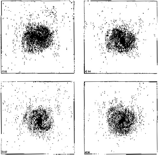 68 Following Miller & Prendergast (1968), particles `jumped' between discrete-valued locations and velocities under discrete forces. The fast finite Fourier-transform method was used for solving Poisson's equation at each integration step. Back.