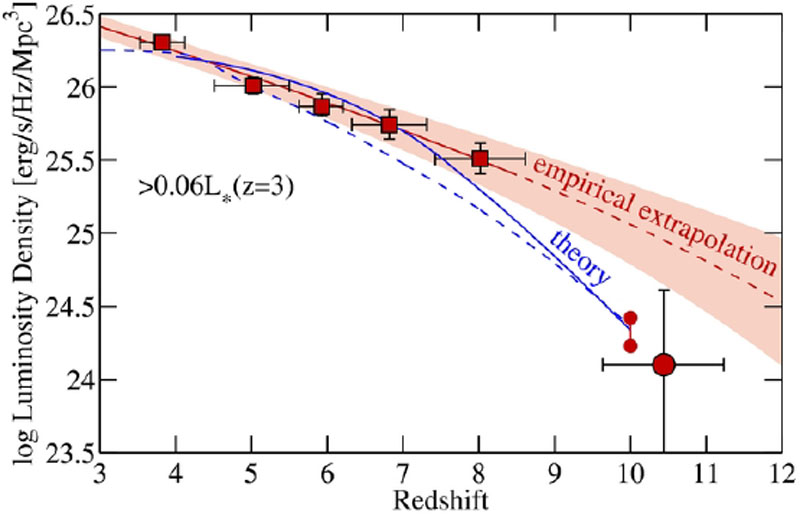 of reionisation-epoch galaxies are faint, but much rarer brighter